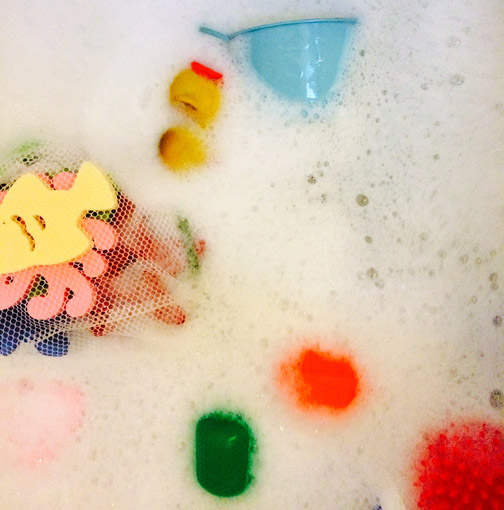 Her first bath, precious; her first bath sitting up, special; bath with cousins, sweetness; even the first soapy faux-hawk is pretty cool. But after a while, it’s hard to show up and bring my A-game. I feel like one of those cops in the movies, just trying to run out the clock till retirement, till she’s down for the night and I get a little slice of me-time.